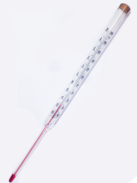 Скляний термометр із вкладеною шкальною пластиною. Капілярна трубка, виготовлена з високоміцного скла, з термометричною рідиною (керосін).